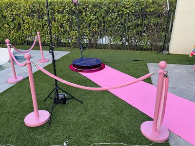 Guests walk down a pink VIP carpet, step onto the 360 platform, and create stunning slow-motion videos that look like they belong on the red carpet.